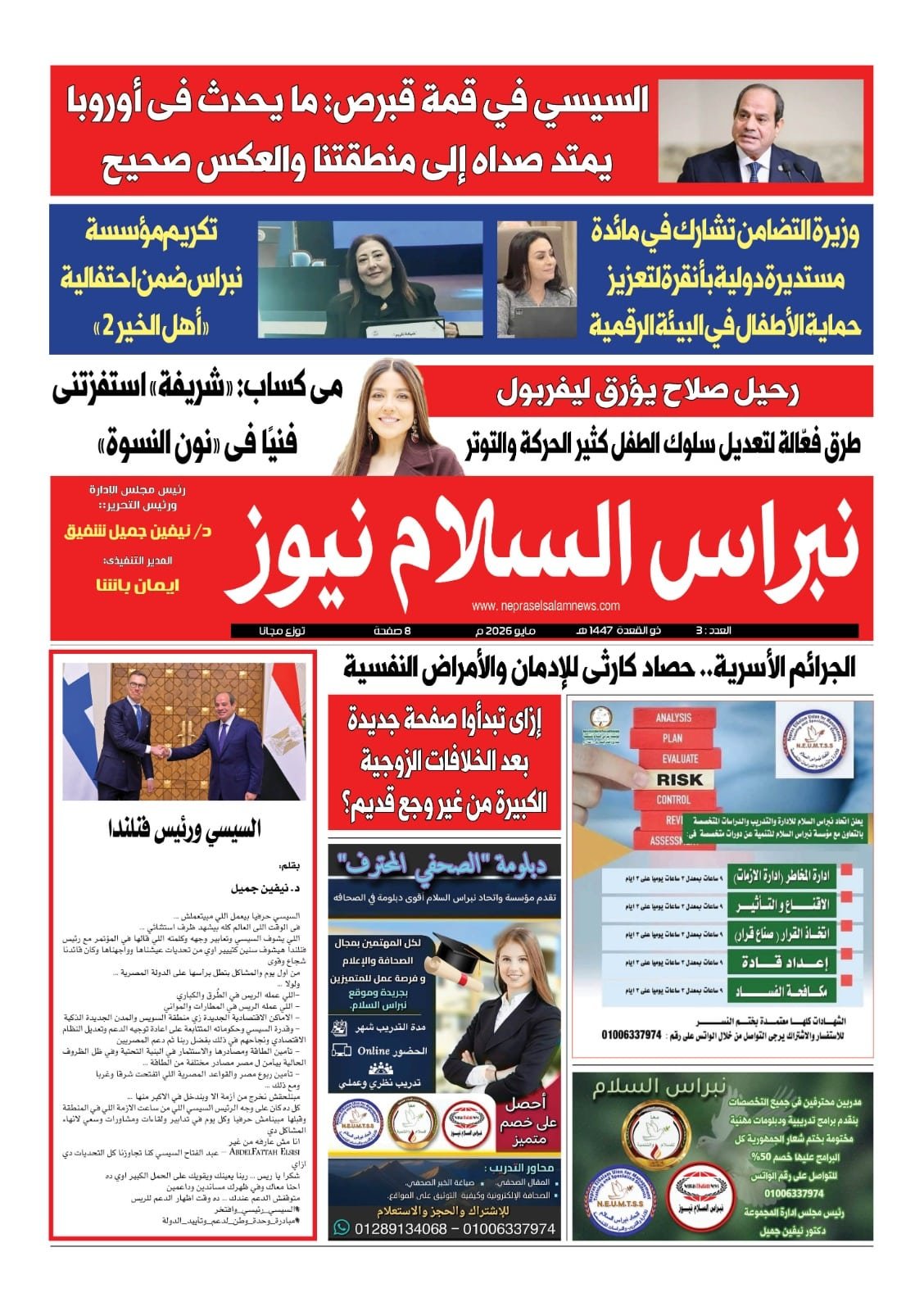 العدد الورقى الثالث لجريدة نبراس السلام نيوز شهر مايو 2026م