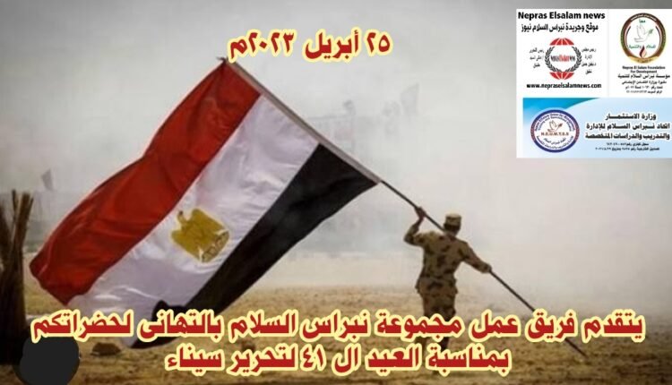 يتقدم كل فريق عمل مجموعة نبراس السلام ،لحضراتكم بالتهانى بمناسبة ذكري تحرير سيناء، حفظ الله وطنا الحبيب مصر، شعب وشرطة وجيش وحفظ لنا فخامة الرئيس عبد الفتاح السيسي القائد الاعلى للقوات المسلحة.🇪🇬