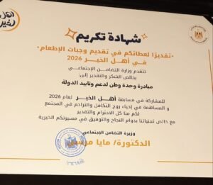 وشهدت الاحتفالية تكريم عدد من الجهات والمؤسسات الفاعلة في العمل الخيري، من بينها الهلال الأحمر المصري، ومؤسسة مصر الخير، ومؤسسة حياة كريمة، ومؤسسة نبراس السلام للتنمية، تقديرًا لجهودهم في دعم منظومة الإطعام وتعزيز العمل المجتمعي.