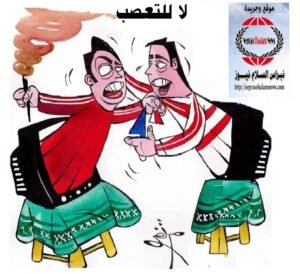 كاريكاتير يعبر عن هذة الأزمة بين القطبين من خلال برامج السوشيال ميدا والتليفزيون وخرج منهم ومن يشجعهم فى حالة اشتباك تعبير عن الحالة التى وصل إليها هذا الصراع