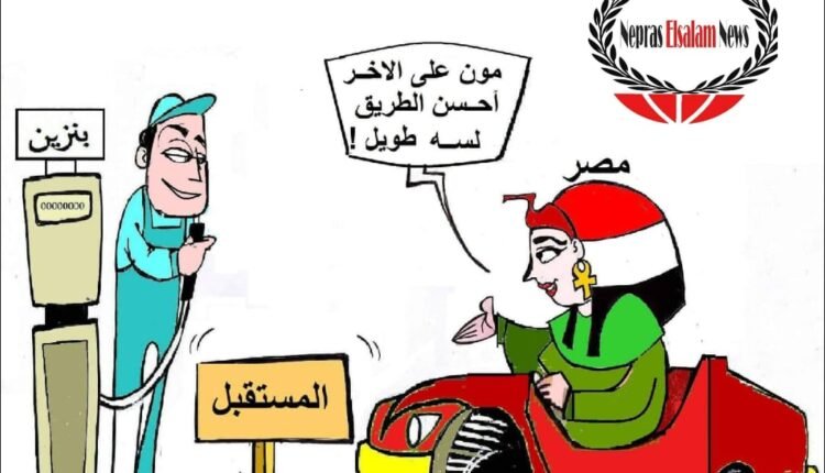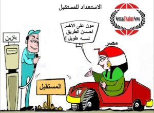 رسم فنان الكاريكاتير ثروت مرتضى مصر تقود سيارة وتقوم بملىء السيارة من الوقود وتطلب الملىء على الاخر نظرا لأن الطريق طويل ويحمل الكثير من التحديات والصعاب ويحمل معها الخير وان لم يظهر الان ولكن مع العمل والجد يوجد الخير ومع الصبر توضح الرؤية لمصر عشرين تلاتين ونعبر الصعاب ويحمل لنا كل خير مع الجد والعمل فالحياة لا تعطيل خيرها الا من يزرع