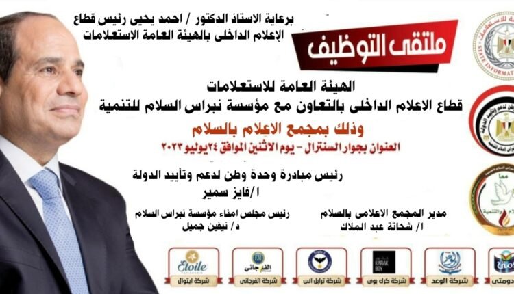 هااااااااام لابنائنا الشباب ملتقي توظيف بمجمع الاعلام بالسلام يوم الاتنين الموافق 24 يوليو 2023 م من الساعة 10 صباحا الى 3 ظهرا