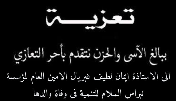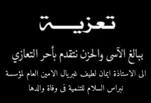 يتقدم مجلس المؤسسين وامناء والمستشارين وجميع اعضاءمجموعة نبراس السلام، بأحر التعازي الى الاستاذة ايمان لطيف غبريال عضو مجلس الامناء والامين العام لمؤسسة نبراس السلام للتنمية فى وفاة والدها المرحوم لطيف غبريال جيد اقامت الاسرة اليوم الخميس 27 يوليو الساعة 11 صباحا صلاة الثالث على روحة الطاهرة بقاعة كنيسة مارجرجس الساحل بشبرا مصر