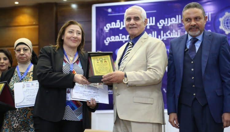 دكتورة نيفين جميل تحصل على تكريم كضيف شرف المؤتمر العربي للاعلام الرقمى