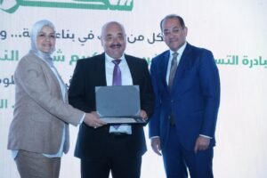 وزير المالية يقوم بتكريم مهندس علاء السقطى رئيس اتحاد مستثمري المشروعات الصغيرة والمتوسطة على مجهوداته فى دعم قطاع المشروعات الصغيرة والمتوسطة ومساعدة المشروعات على تقنين أوضاعها من خلال الترويج والتوعية بحوافز قوانين الضرائب الجديدة